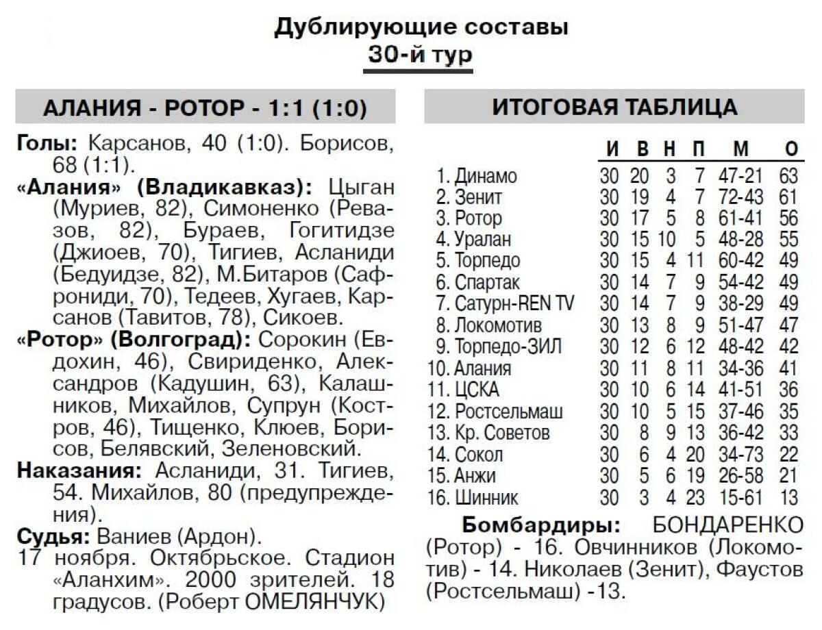 «Алания» Владикавказ - «Ротор» Волгоград - 1:1