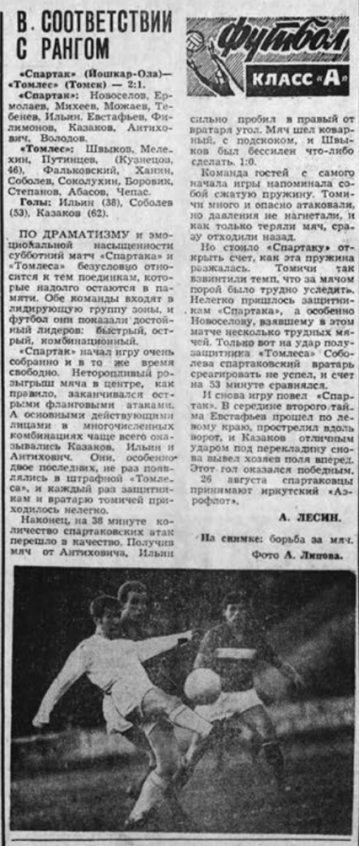 «Спартак» Йошкар-Ола - «Томлес» Томск - 2:1