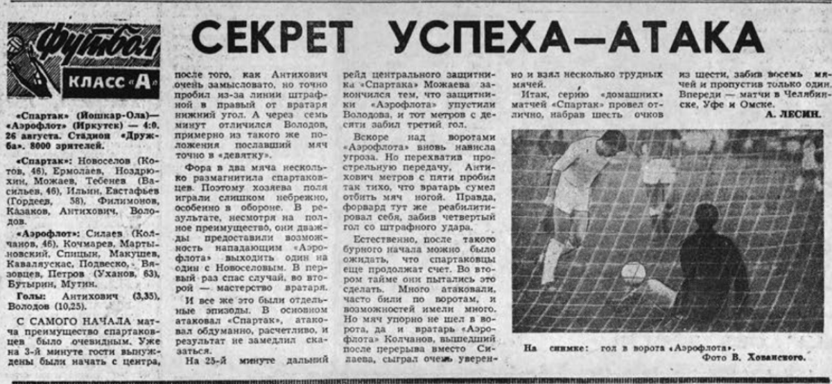 «Спартак» Йошкар-Ола - «Аэрофлот» Иркутск - 4:0