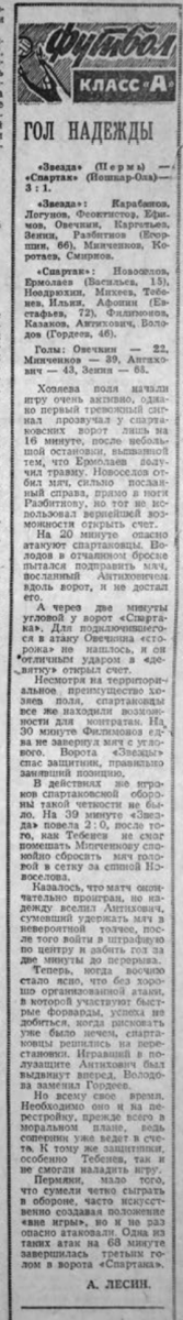 «Звезда» Пермь - «Спартак» Йошкар-Ола - 3:1