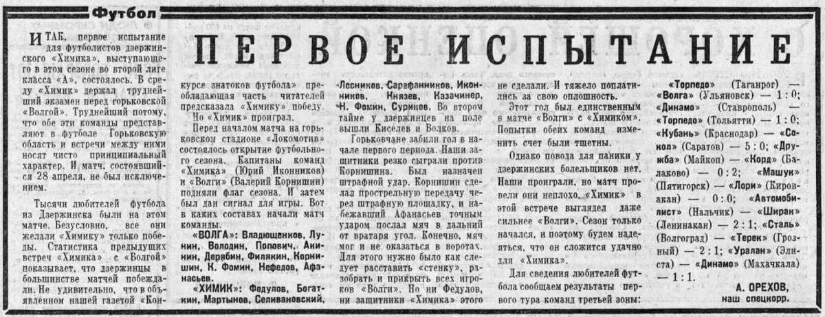 «Волга» Горький - «Химик» Дзержинск - 1:0