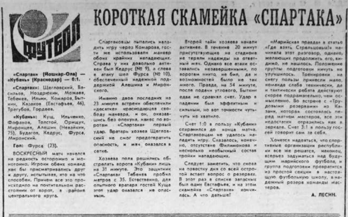 «Спартак» Йошкар-Ола - «Кубань» Краснодар - 0:1