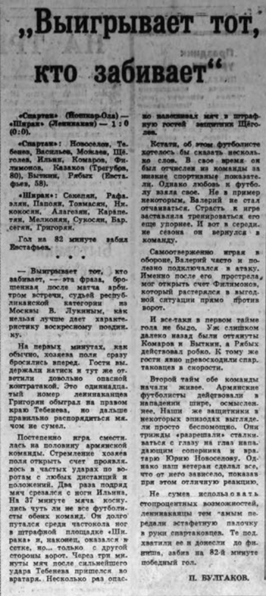«Спартак» Йошкар-Ола - «Ширак» Ленинакан - 1:0