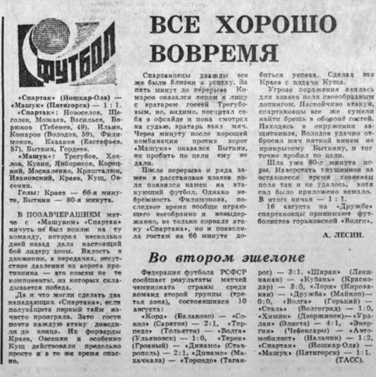 «Спартак» Йошкар-Ола - «Машук» Пятигорск - 1:1