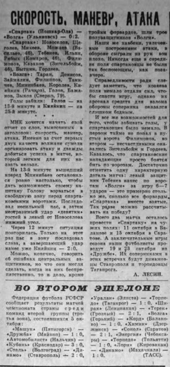 «Спартак» Йошкар-Ола - «Волга» Ульяновск - 0:2