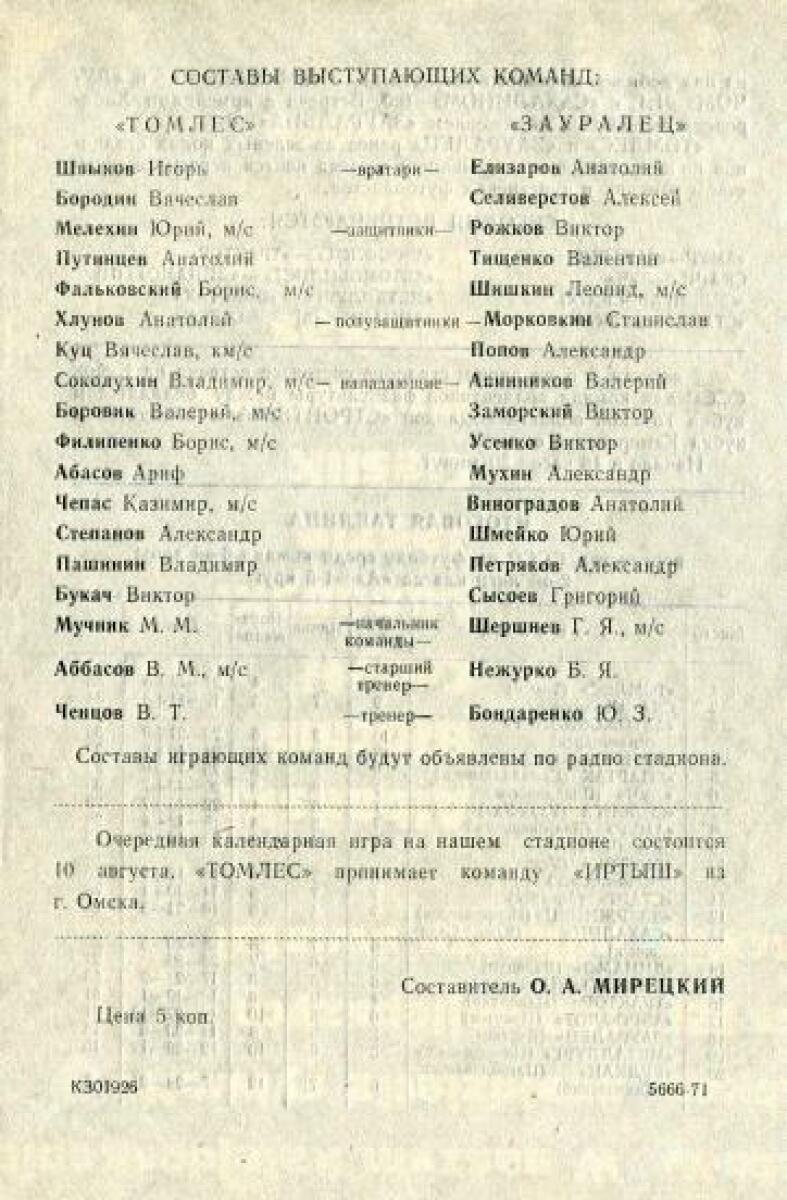 «Томлес» Томск - «Зауралец» Курган - 4:1