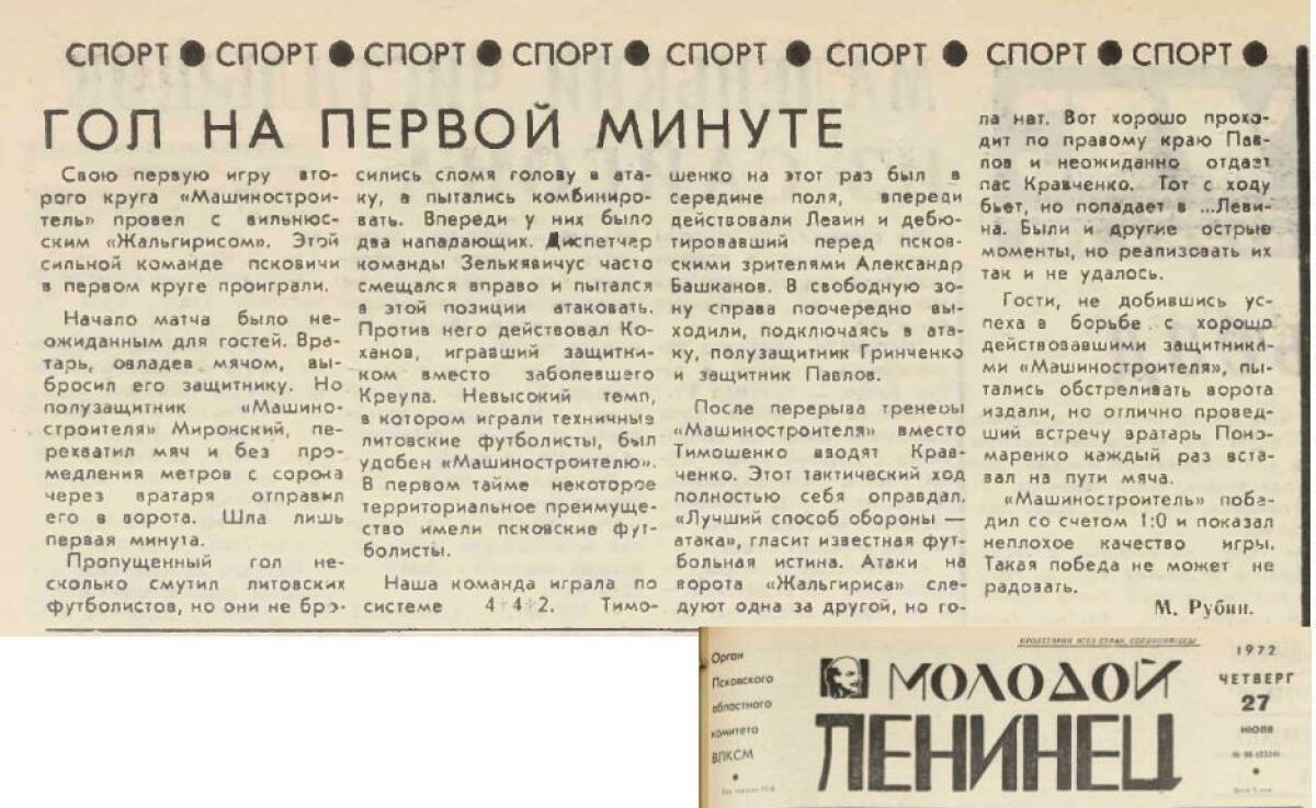 «Машиностроитель» Псков - «Жальгирис» Вильнюс - 1:0
