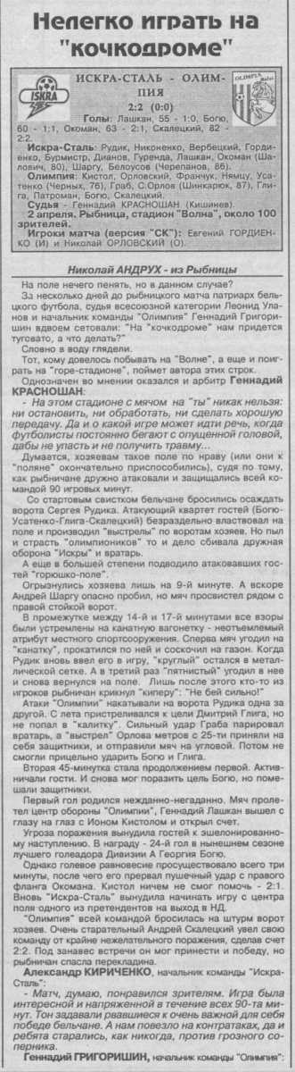 «Искра-Сталь» Рыбница - «Олимпия» Бельцы - 2:2