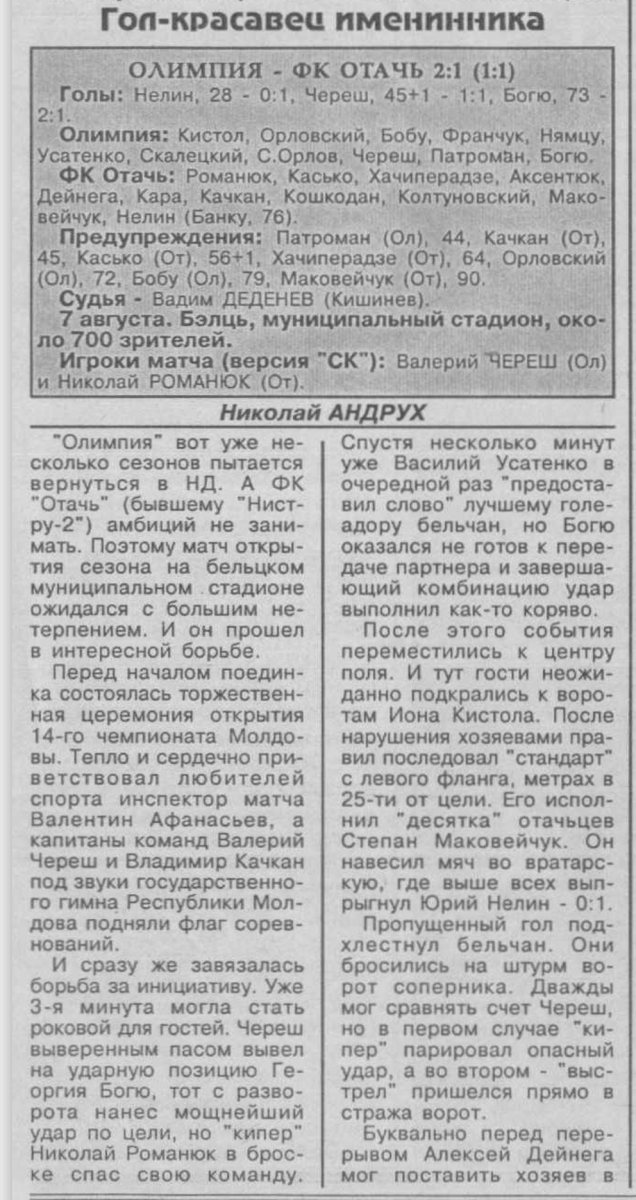 «Олимпия» Бельцы - «Отачь» Атаки - 2:1