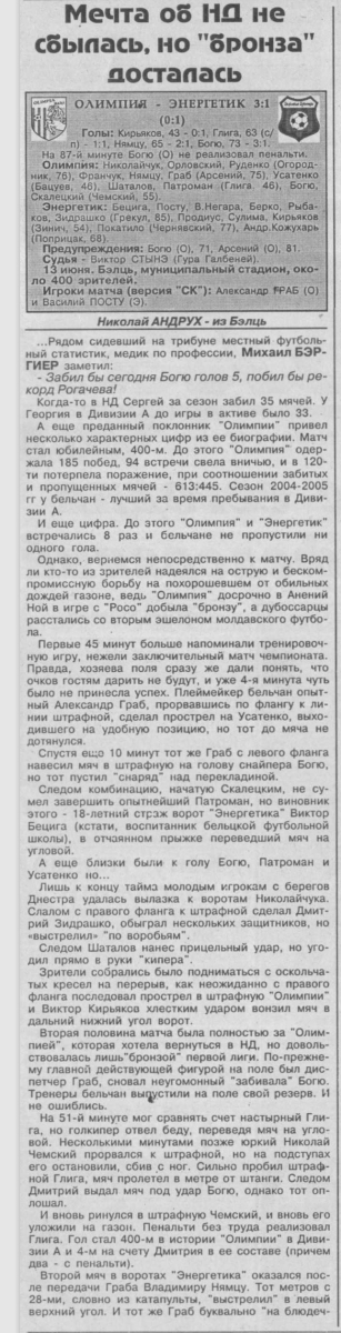 «Олимпия» Бельцы - «Энергетик» Дубоссары - 3:1