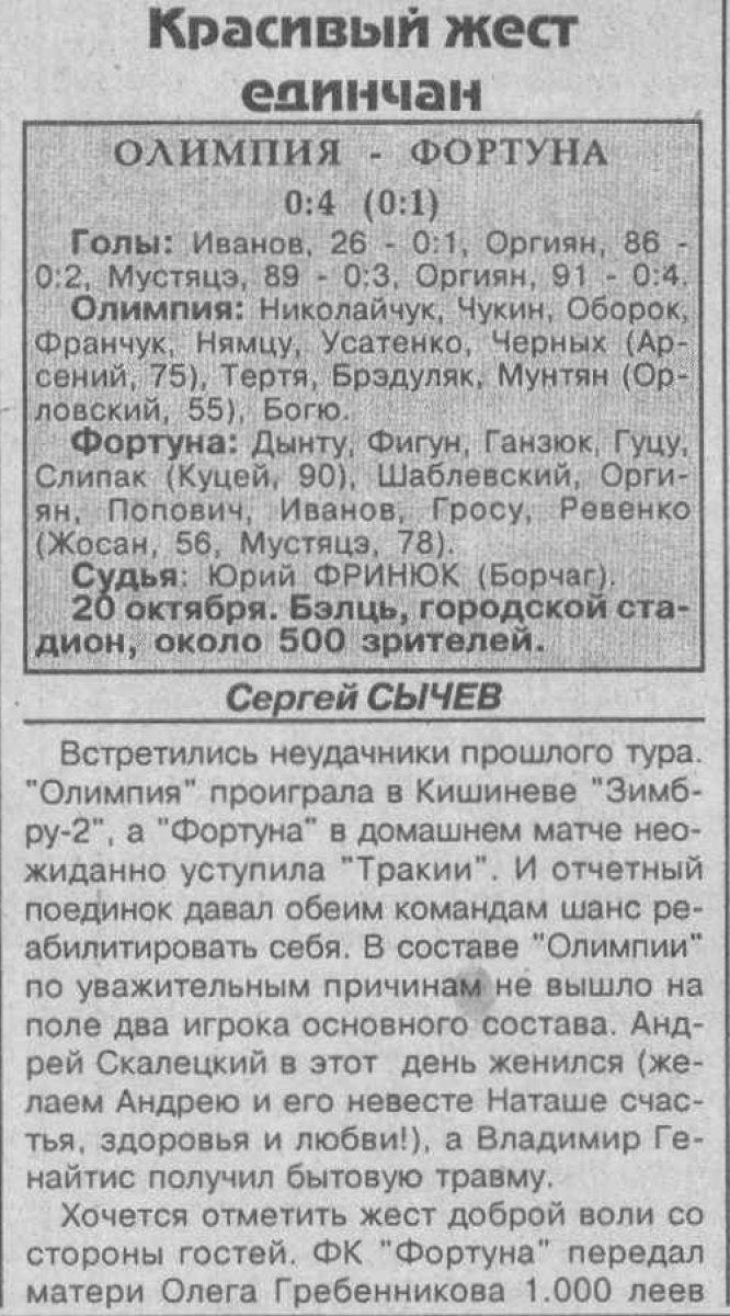 «Олимпия» Бельцы - «Фортуна» Единец - 0:4