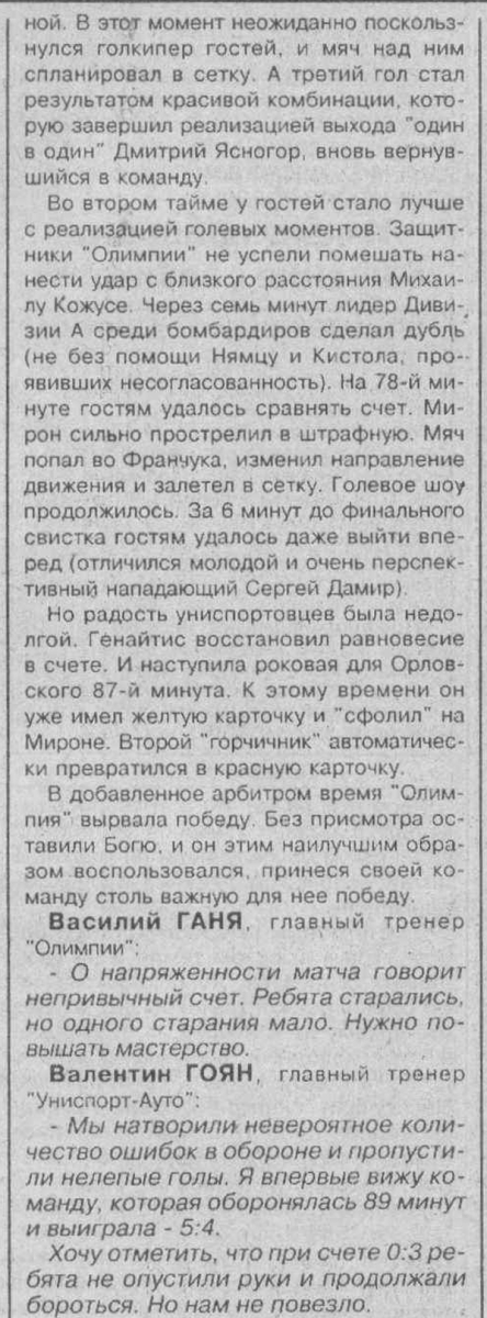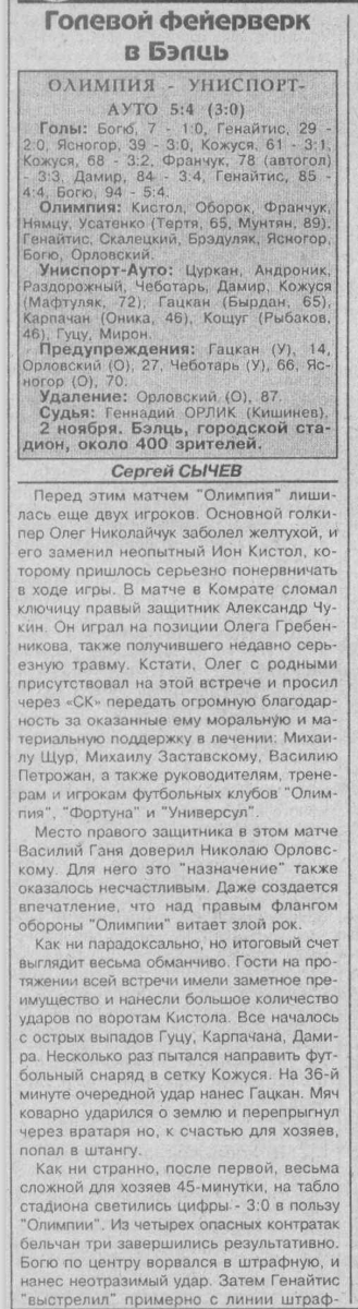 «Олимпия» Бельцы - «Униспорт-Авто» Кишинёв - 5:4