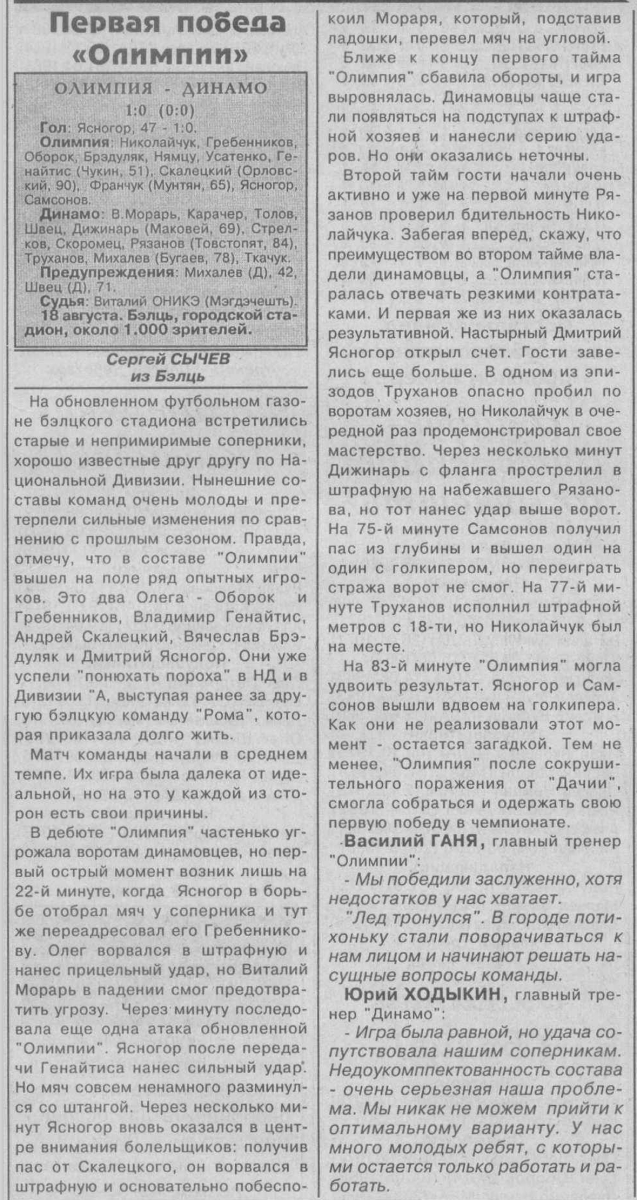 «Олимпия» Бельцы - «Динамо» Бендеры - 1:0