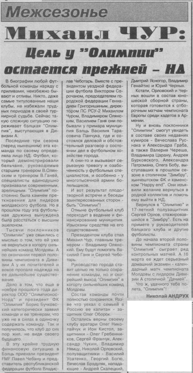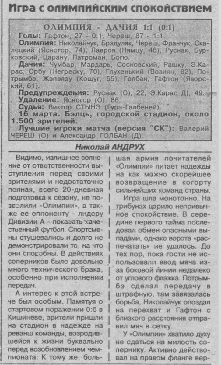 «Олимпия» Бельцы - «Дачия» Кишинёв - 1:1