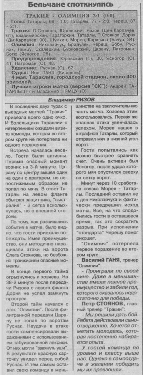 «Тракия» Тараклия - «Олимпия» Бельцы - 2:1