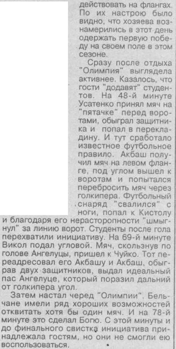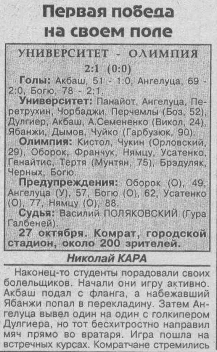 «Университатя» Комрат - «Олимпия» Бельцы - 2:1