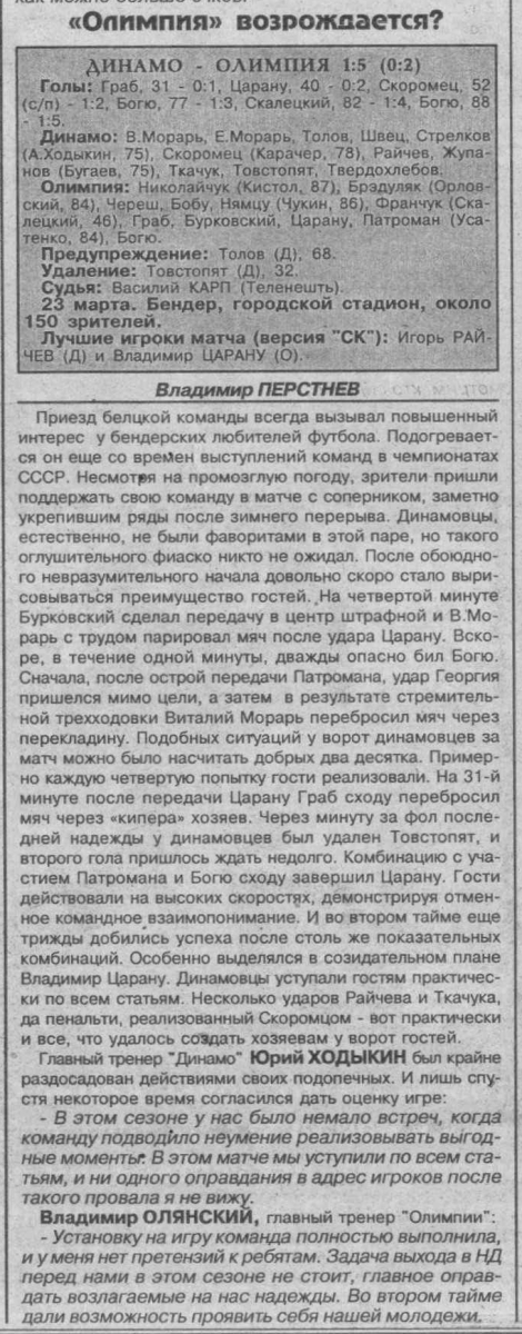 «Динамо» Бендеры - «Олимпия» Бельцы - 1:5