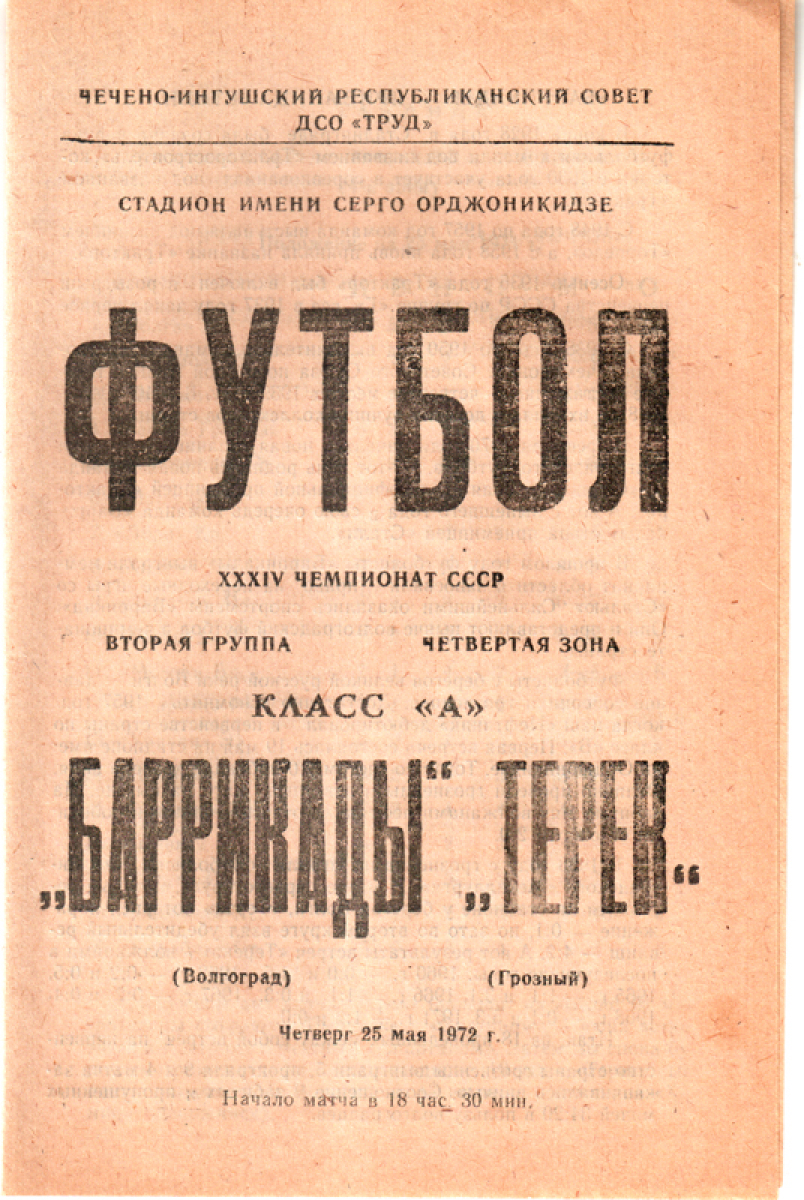 «Терек» Грозный - «Баррикады» Волгоград - 0:0