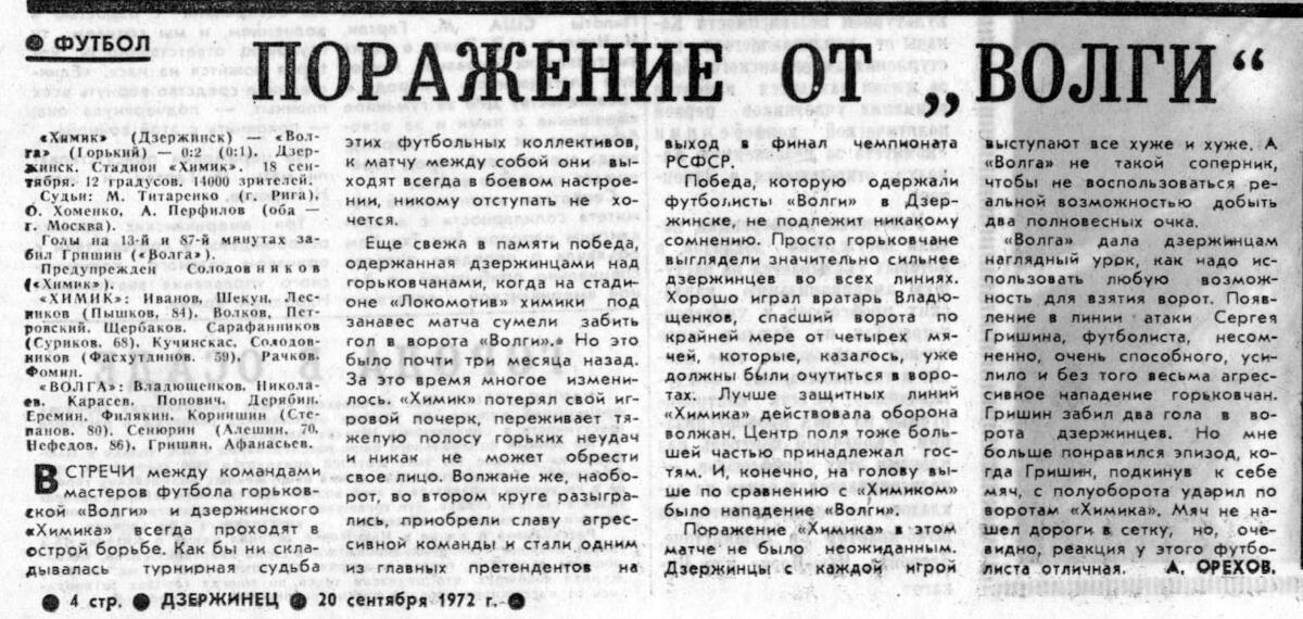 «Химик» Дзержинск - «Волга» Горький - 0:2