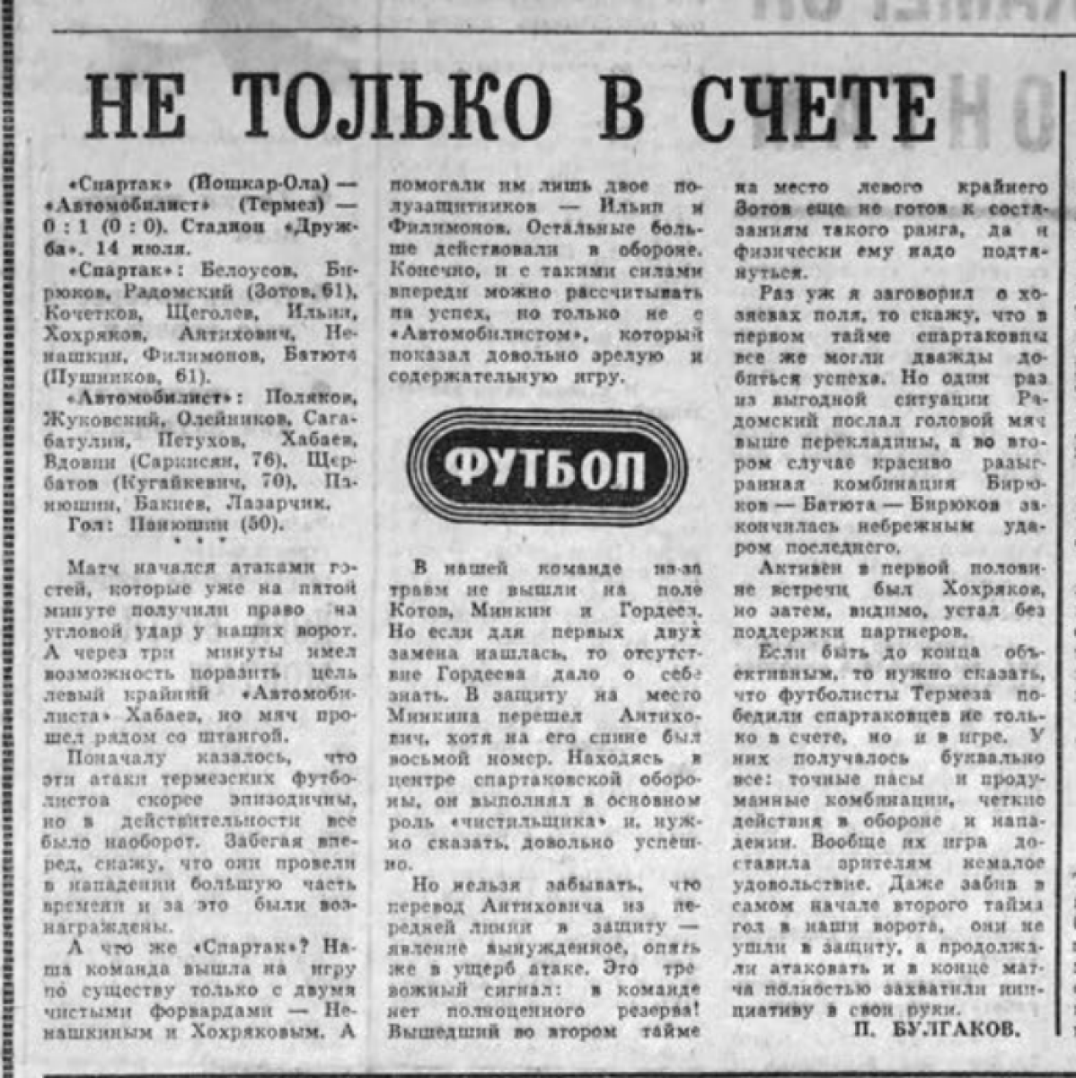 «Спартак» Йошкар-Ола - «Автомобилист» Термез - 0:1