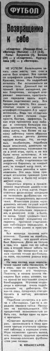 «Спартак» Йошкар-Ола - «Янгиер» Янгиер - 2:1