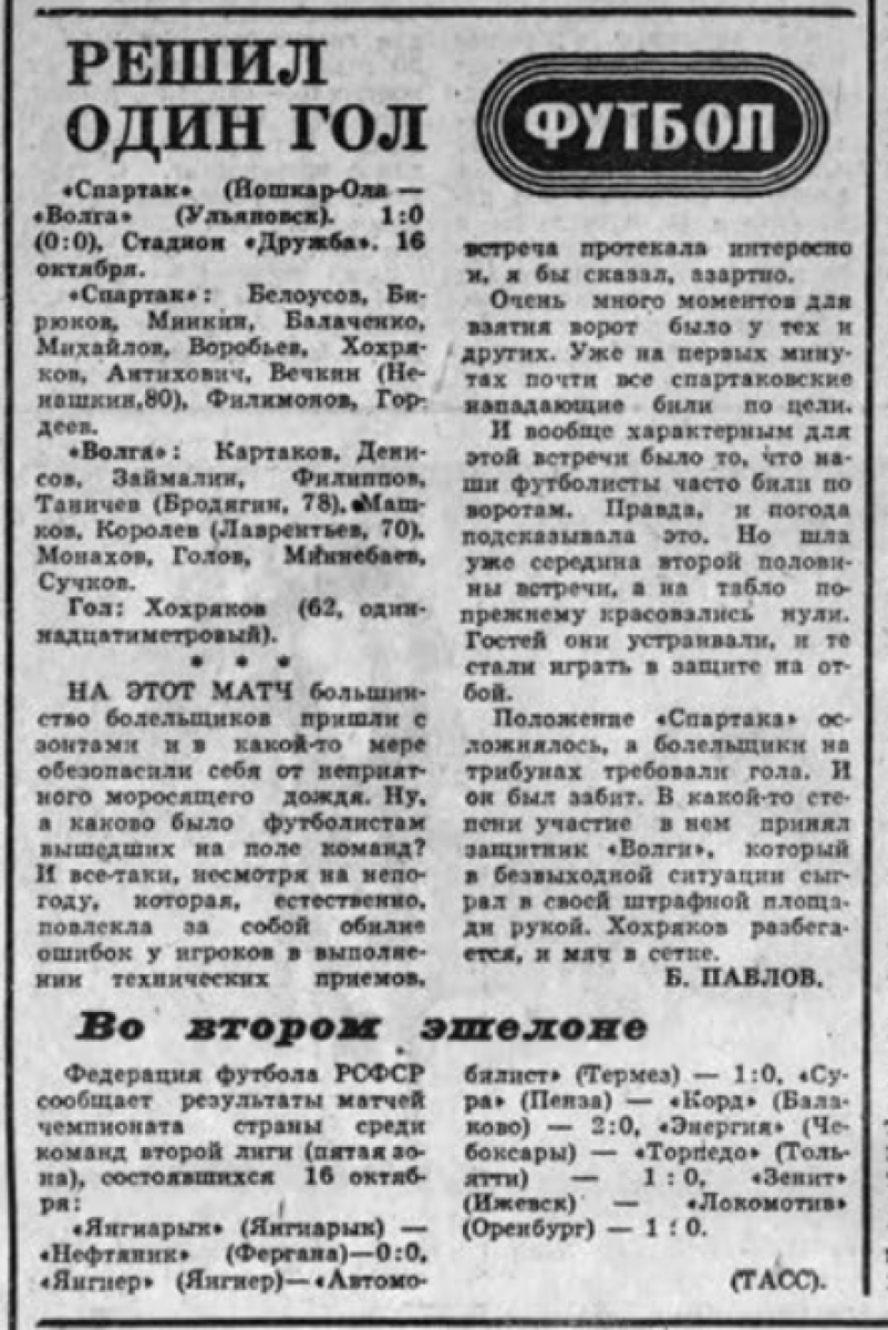 «Спартак» Йошкар-Ола - «Волга» Ульяновск - 1:0