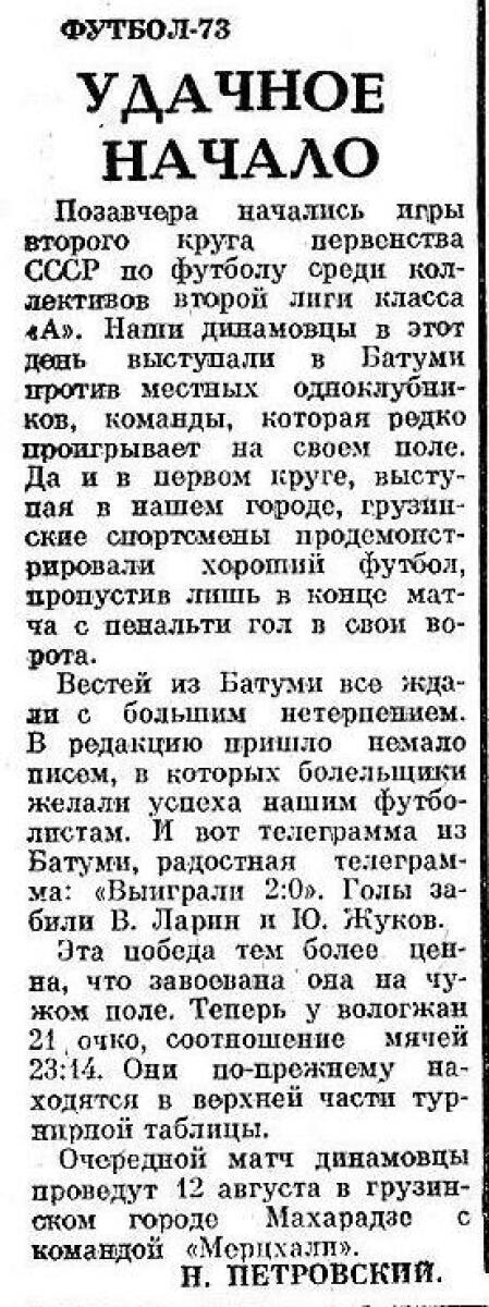 Чемпионат СССР 1973. Вторая лига (D3)