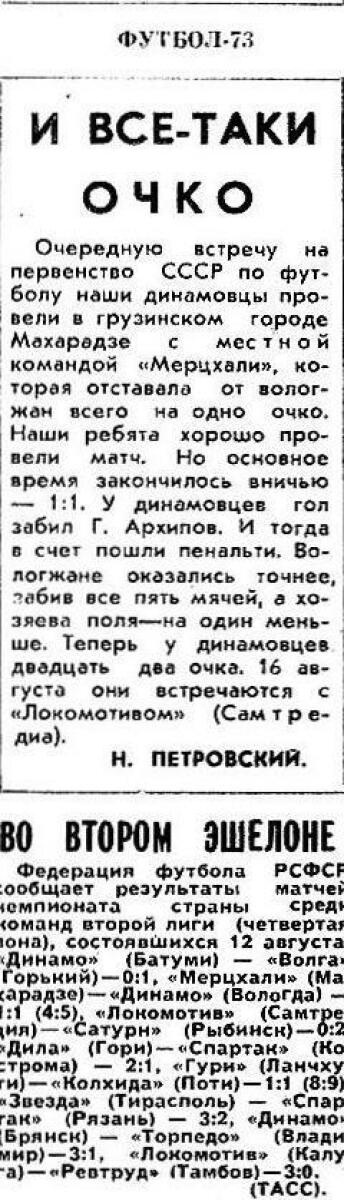 «Мерцхали» Махарадзе - «Динамо» Вологда - 1:1