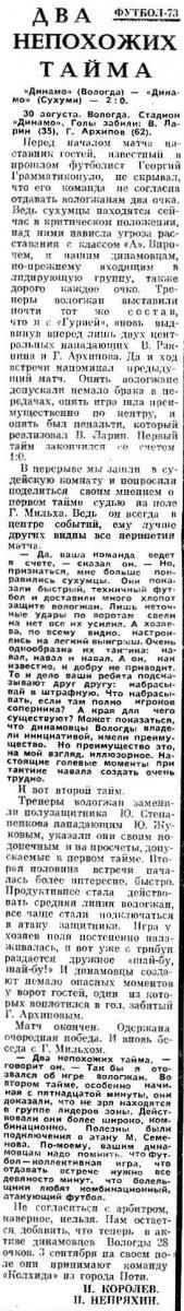 «Динамо» Вологда - «Динамо» Сухуми - 2:0