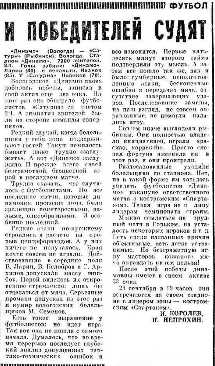 «Динамо» Вологда - «Сатурн» Рыбинск - 2:1