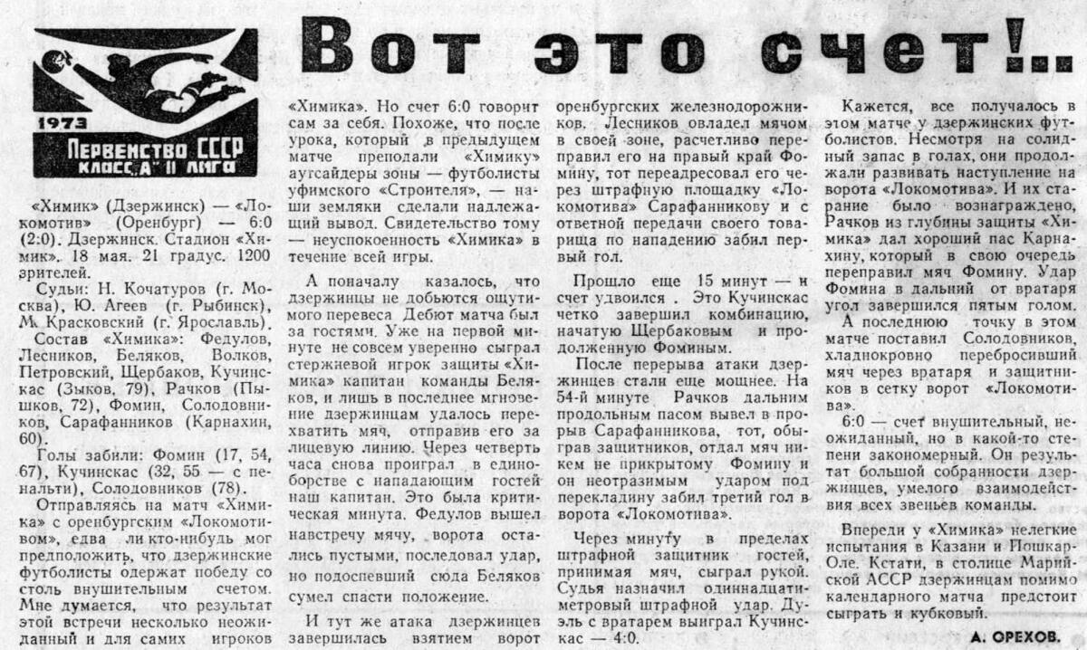 «Химик» Дзержинск - «Локомотив» Оренбург - 6:0