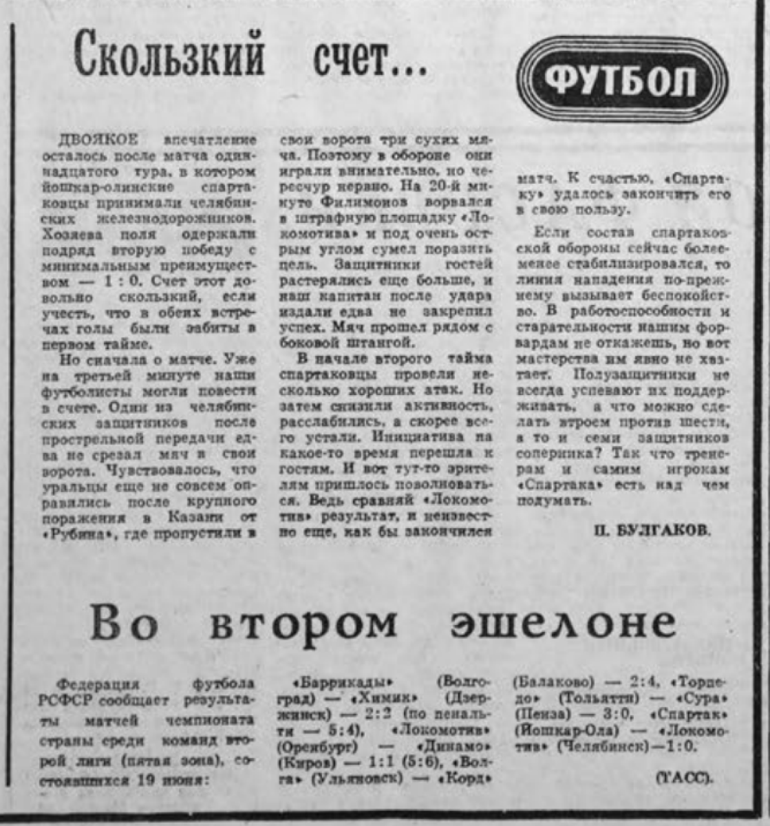 «Спартак» Йошкар-Ола - «Локомотив» Челябинск - 1:0