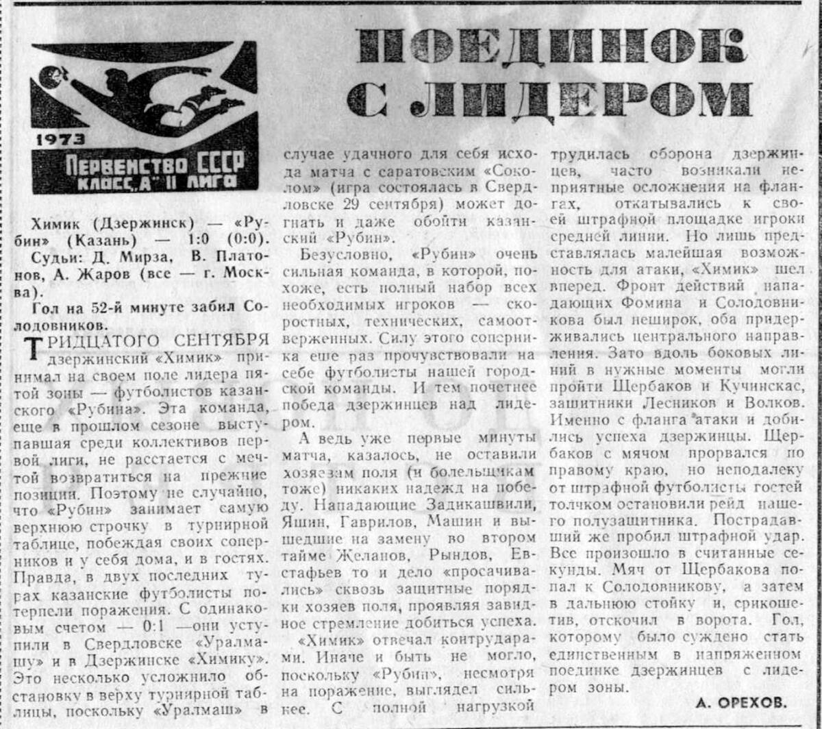 «Химик» Дзержинск - «Рубин» Казань - 1:0
