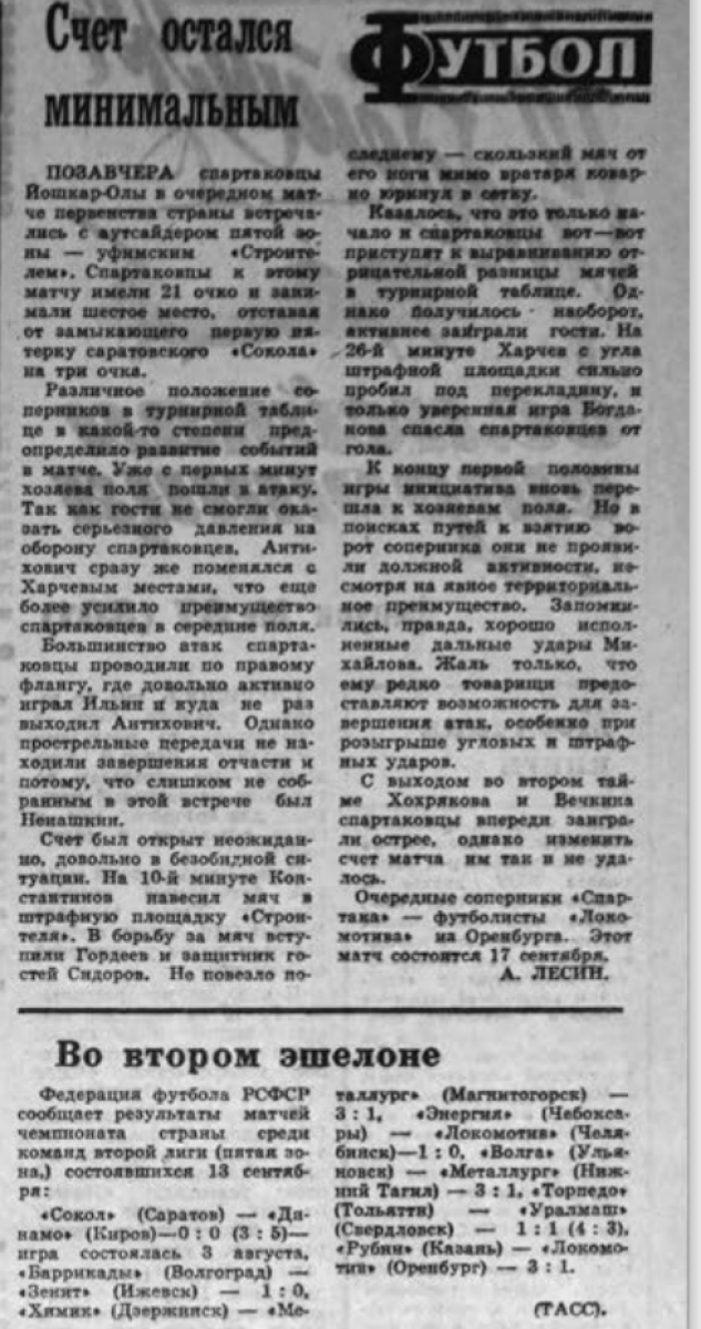 «Спартак» Йошкар-Ола - «Строитель» Уфа - 1:0
