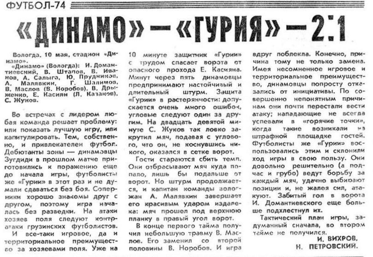 «Динамо» Вологда - «Гурия» Ланчхути - 2:1