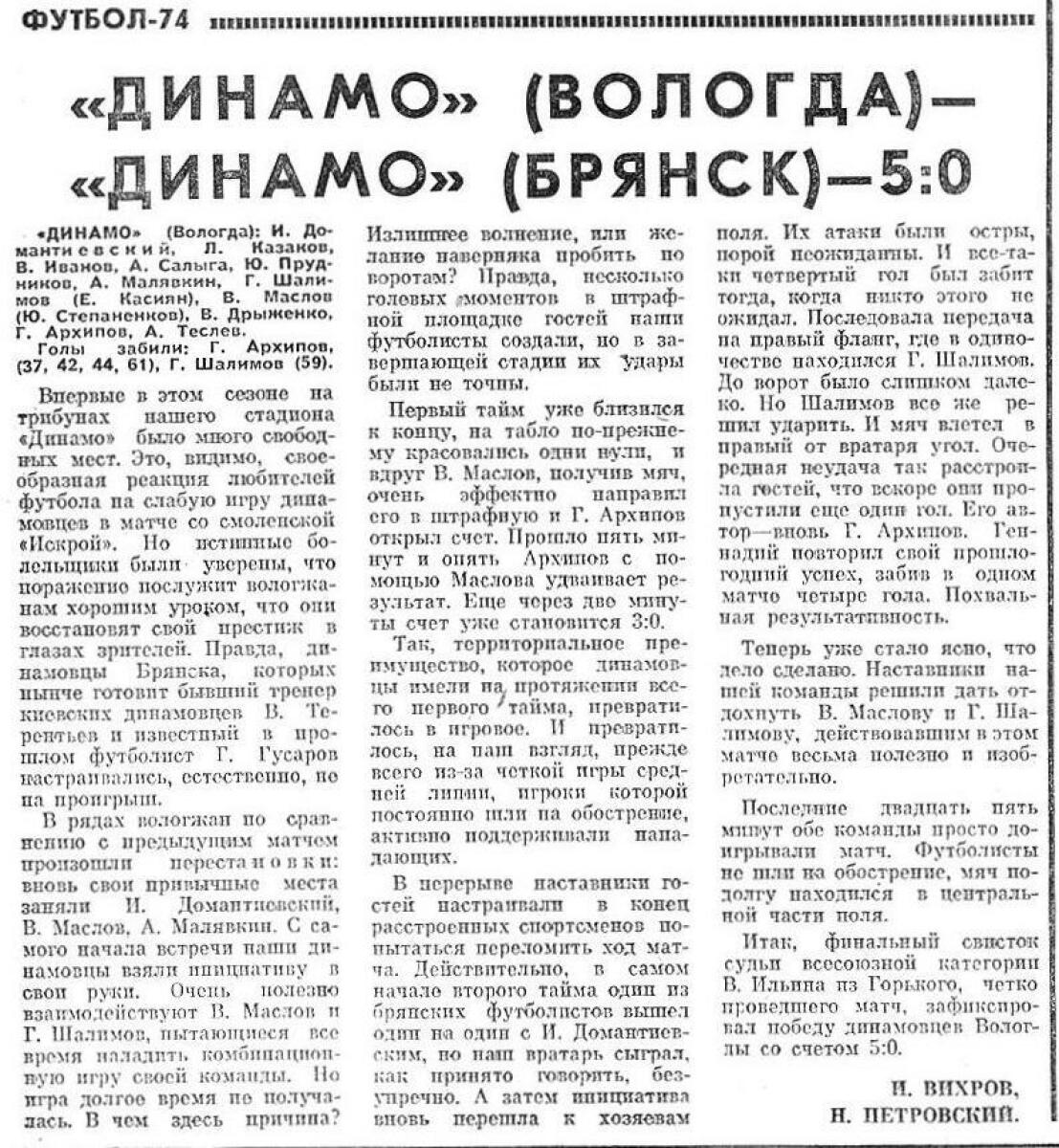 «Динамо» Вологда - «Динамо» Брянск - 5:0