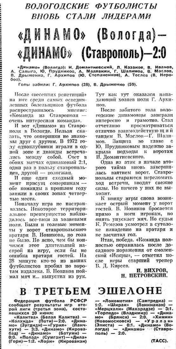 «Динамо» Вологда - «Динамо» Ставрополь - 2:0