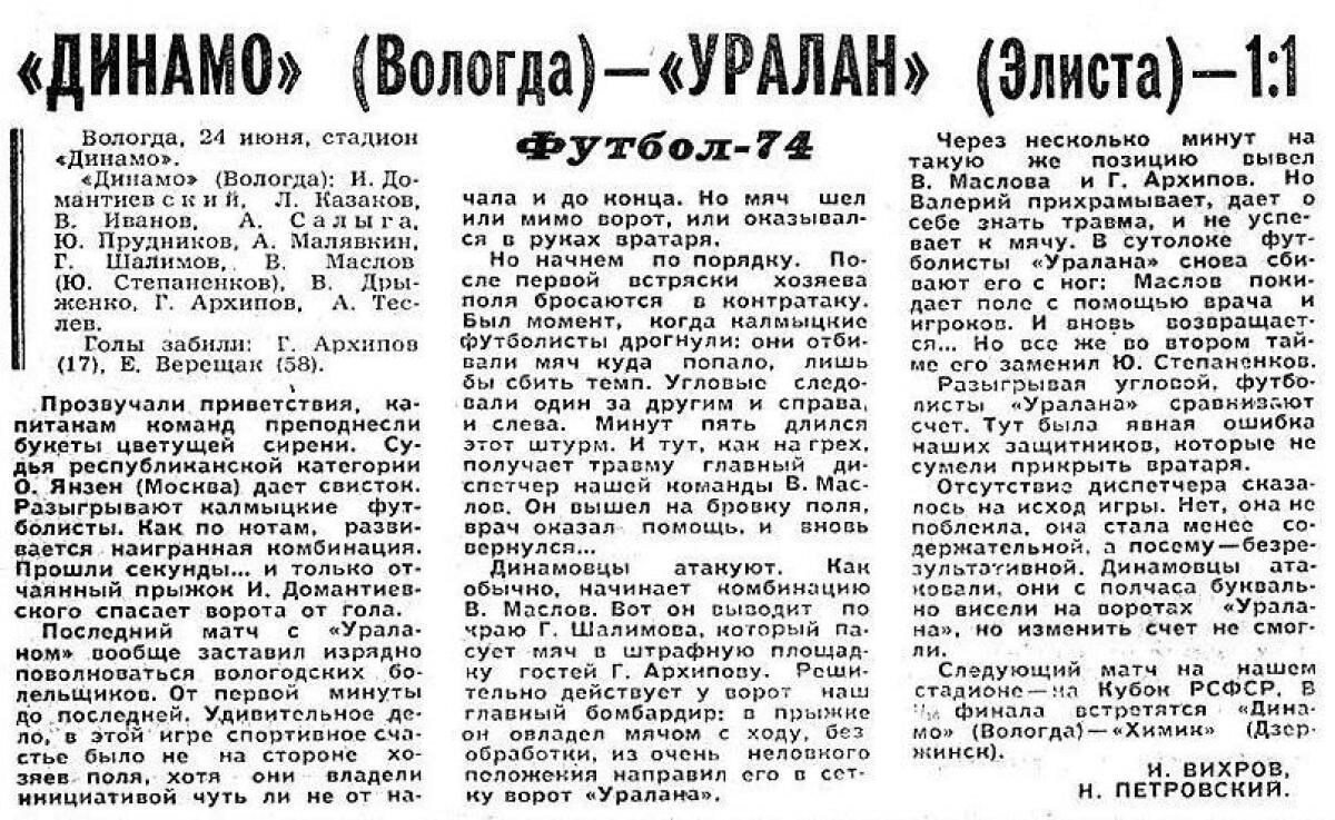 «Динамо» Вологда - «Уралан» Элиста - 1:1