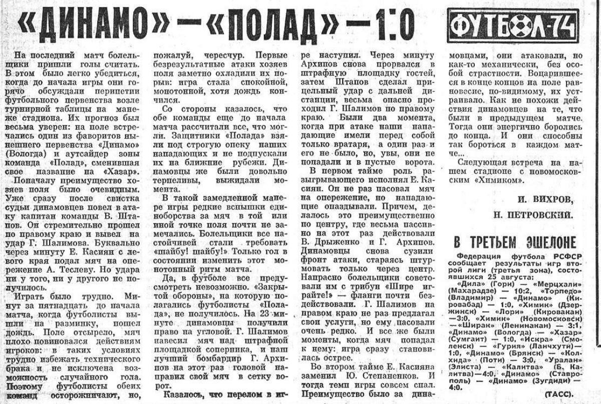 «Динамо» Вологда - «Хазар» Сумгаит - 1:0