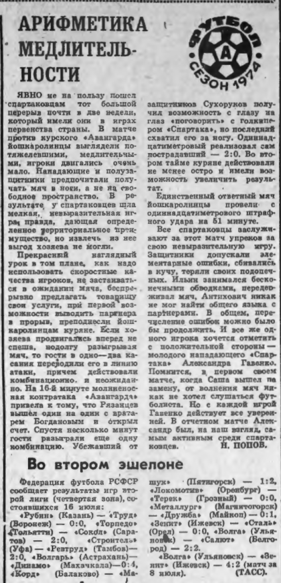 Чемпионат СССР 1974. Вторая лига (D3)