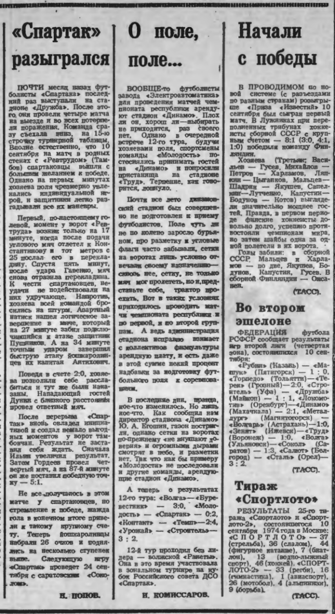Чемпионат СССР 1974. Вторая лига (D3)
