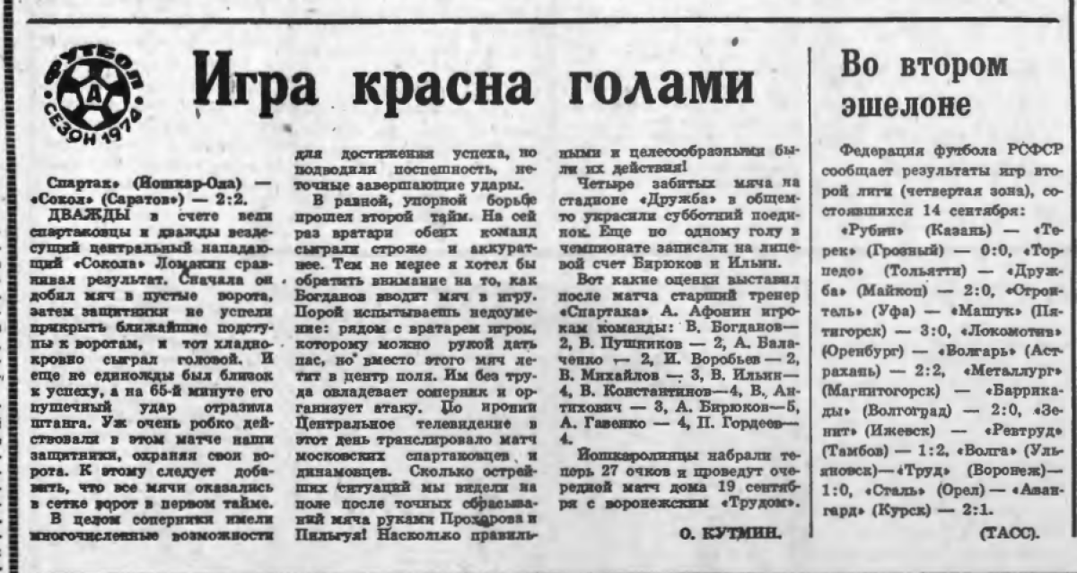 Чемпионат СССР 1974. Вторая лига (D3)