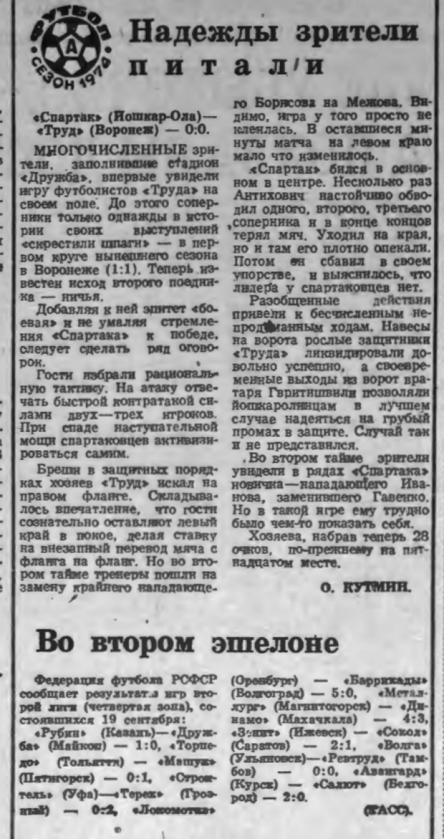 Чемпионат СССР 1974. Вторая лига (D3)
