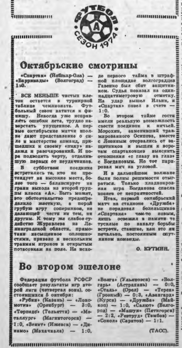 «Спартак» Йошкар-Ола - «Баррикады» Волгоград - 1:0