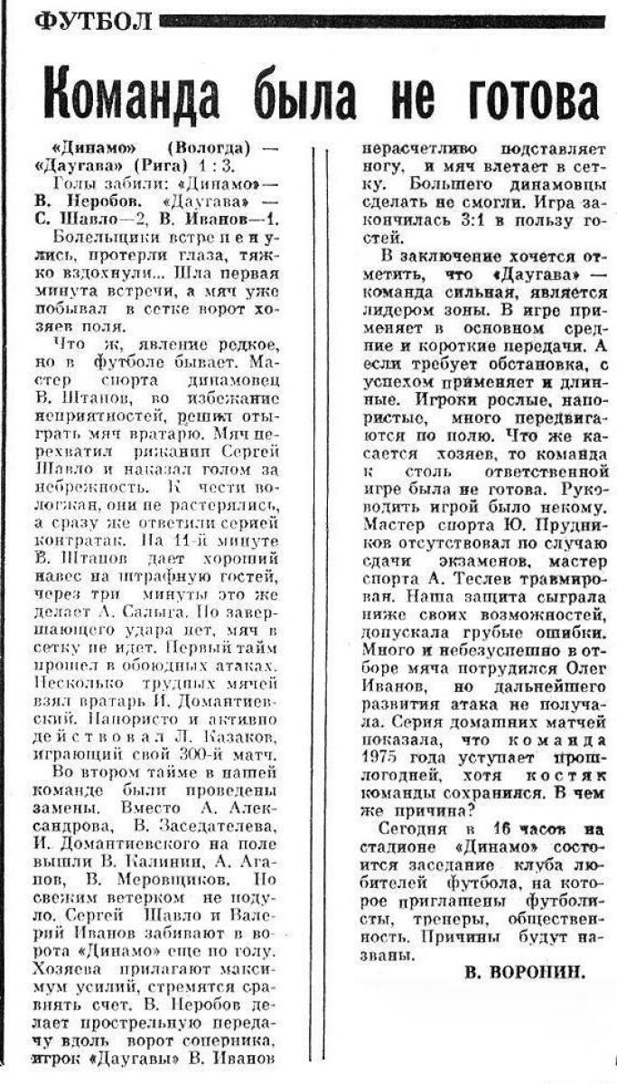 «Динамо» Вологда - «Даугава» Рига - 1:3