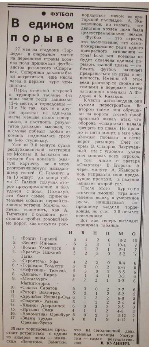 «Торпедо» Тольятти - «Спартак» Рязань - 2:0
