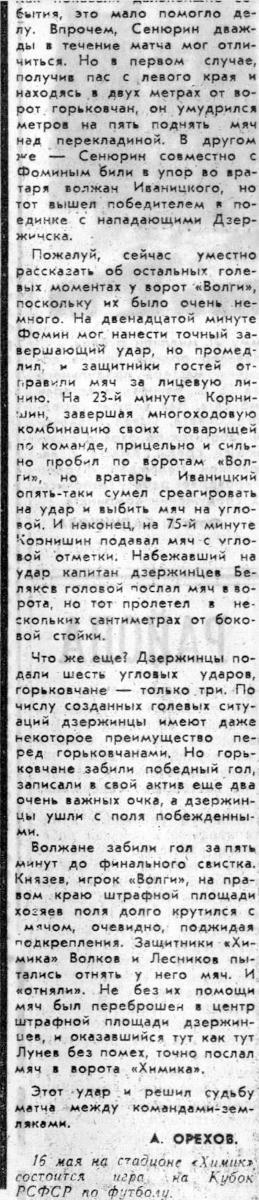 «Химик» Дзержинск - «Волга» Горький - 0:1