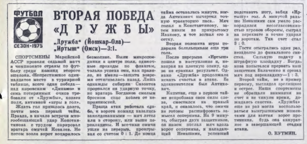 «Дружба» Йошкар-Ола - «Иртыш» Омск - 3:1