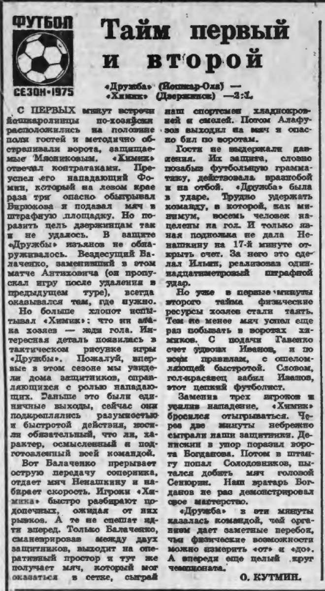 «Дружба» Йошкар-Ола - «Химик» Дзержинск - 2:1