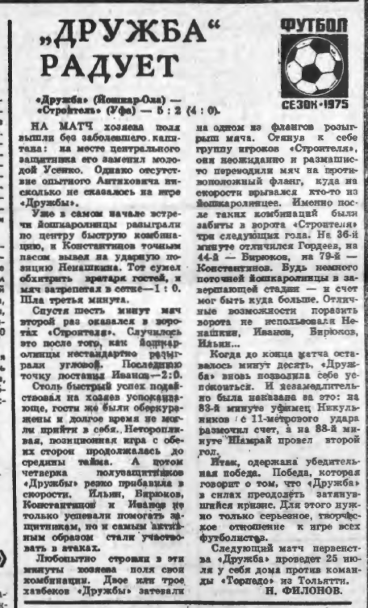 «Дружба» Йошкар-Ола - «Строитель» Уфа - 5:2